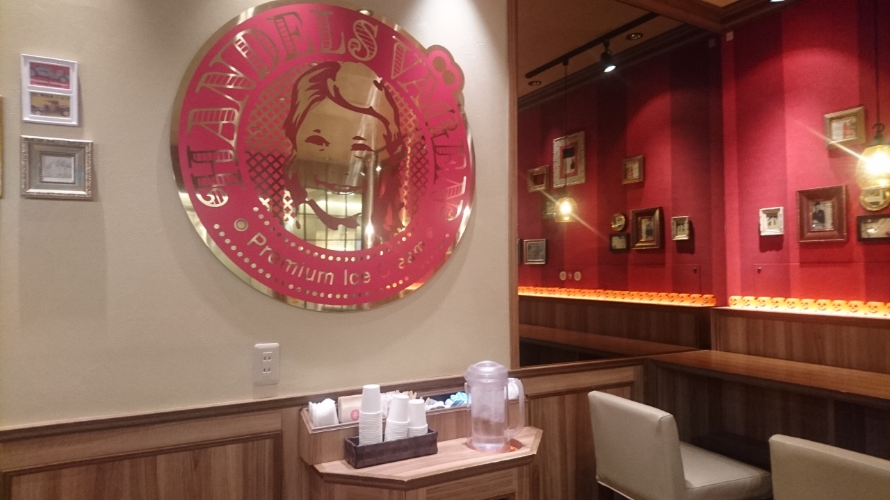 京都の地下鉄東西線の京都市役所前駅の地下のZest(ゼスト)御池にあるハンデルスベーゲン。ゼスト自体、(日)の11時頃でも空いていた。ハンデルスベーゲンの店内は2名用のテーブルが4つ、カウンターが7席と狭いがお客さんは誰もいなかった。お水やお手拭きはセルフコーナーから。ワッフルコーンのSサイズを。アイスは2種類選べて大人のラムレーズンとピスタチオを注文。アイスは上下ではなく、左右に並べてワッフルコーンの中に。店内はハロウィンの飾り付けもされていた。アイスは12種類くらい売っていた。、