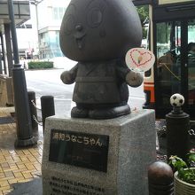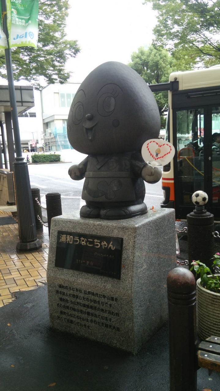 浦和駅の西口は駅ビルの建設工事中でとても狭くなっています。従来、駅を出ると笑顔で迎えてくれたうなこちゃんは少し外れに移動中です。現在のうなこ象、よく見るとしたのアスファルトが四角く新しくなったいます。