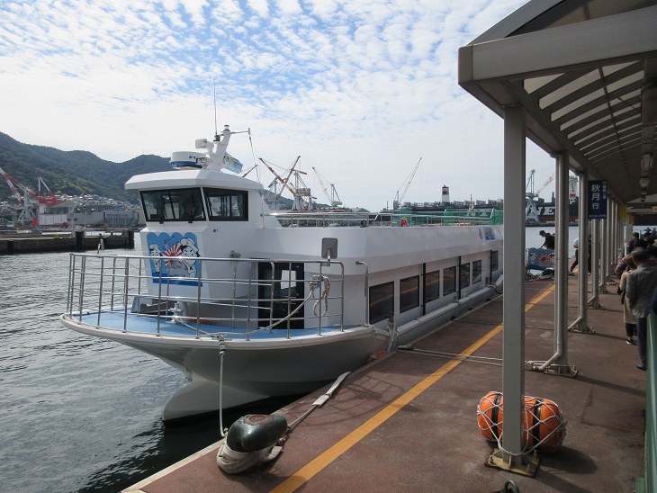 呉中央桟橋から出発。30分で自衛隊の艦船を船上から見学できます。