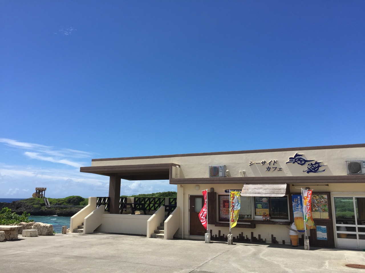 海中観察施設「宮古島海中公園」に隣接しているちょっとした喫茶店的なお店。看板にはシーサイドカフェ海遊とある。