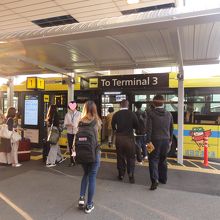 第2ターミナルと第3ターミナル間の無料連絡バスです。5分間隔で運行され時間も以前より短くなりました。大きな荷物を持ったり子連れにはターミナル間を歩くより便利ですね。運行間隔が短くなった分、席に余裕があってもすぐ出発します。試しに一度歩いてみましたがバスがお勧めです。