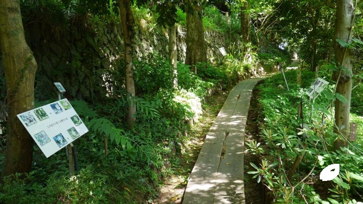 一方野草園は木道が設けられており、群生地にはプレートで解説が記されている。