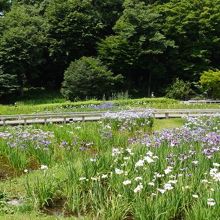周辺は水源が豊かな場所のようできれいな水の流れと共に、ちょうど見ごろを迎えていたショウブの花を眺めることができた。