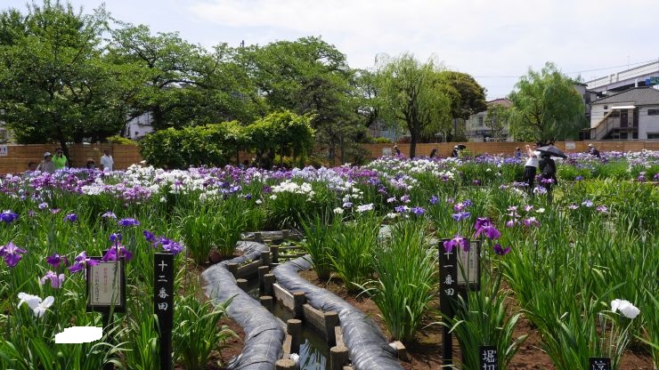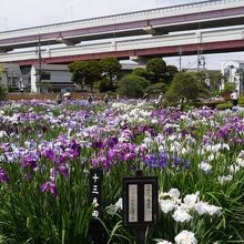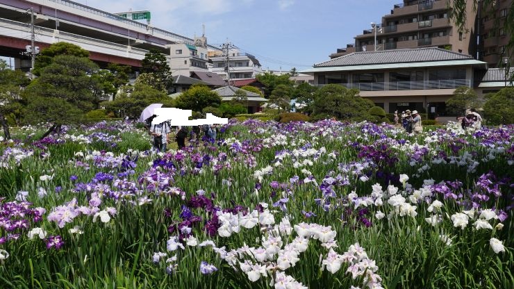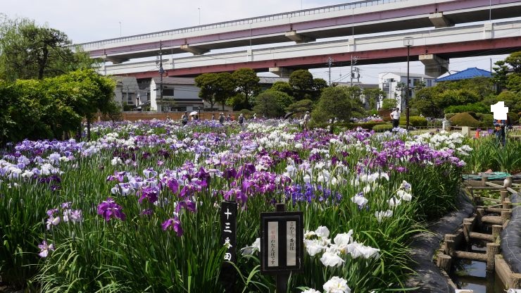 荒川の河川敷にほど近くにある小さなしょうぶ園。コンパクトゆえにびっしりと群生するショウブの花を眺めることができた。都市化が進んだ東京都内でもこういった自然スポットが残っているのが意外に感じる。