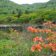 6月の時期は野生のツツジが見頃を迎えており、オレンジ色の花の群生が見ごたえある。