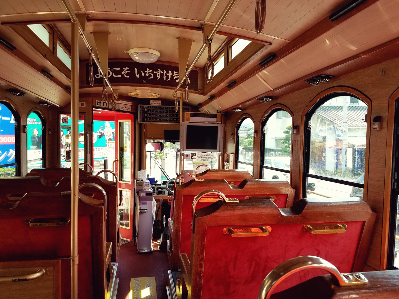 錦帯橋のバスターミナルから岩国駅に行くのに利用しました。レトロな車体が可愛いいちすけ号です。