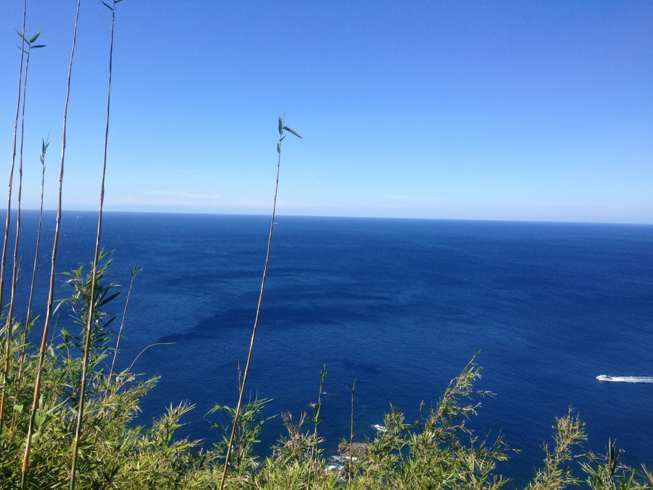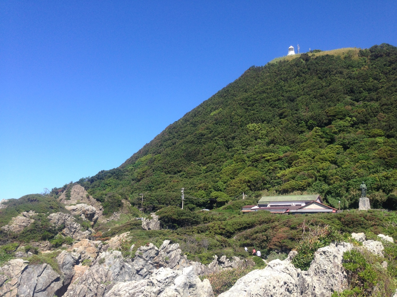 太平洋に突き刺さるように飛び出した室戸岬は台風の通り道としても有名だが、岬そのものは海沿いに走る道路に続く地磯で、歩いて海際まで行ける。灯台と最御崎寺はそこからずーっと登った山の上にある。途中の道路からの太平洋はあくまでも青く広がっている。