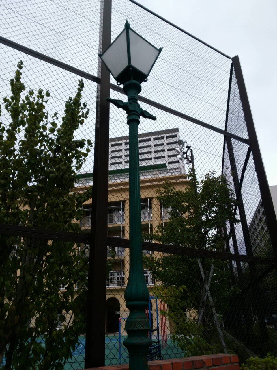 聖路加国際病院近くの明石小学校の校庭脇の歩道沿いにガス街灯柱はありました。この辺りは、明治時代は外国人居留地があったこともあり、レンガ塀の遺構などとともに当時の面影を残すもののひとつとして風情を感じることができるものでした。