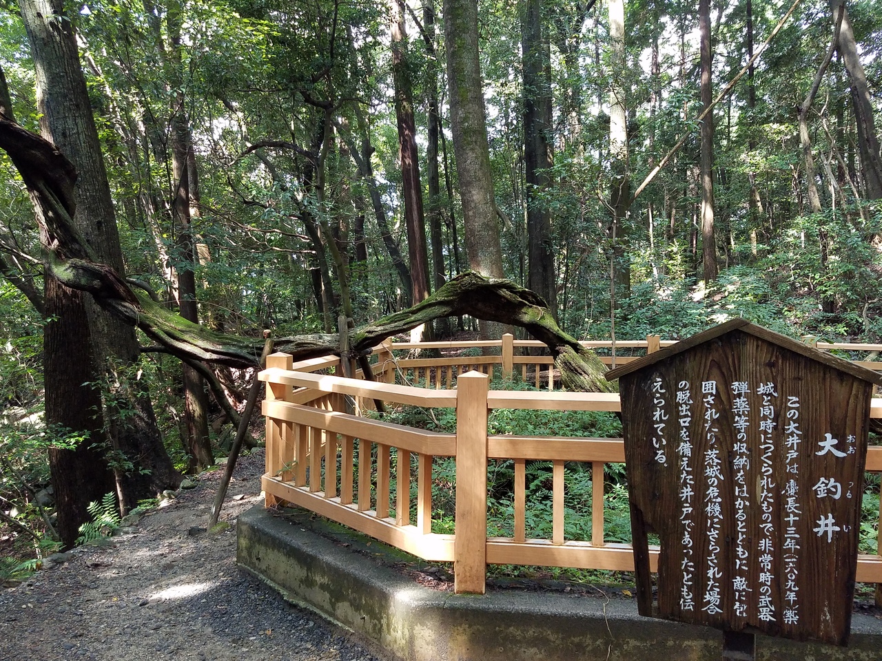 岩国城ロープウェイの山頂駅から岩国城に向かう山道の途中にある大きな井戸です。