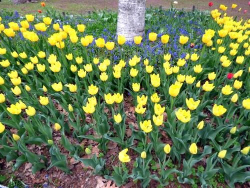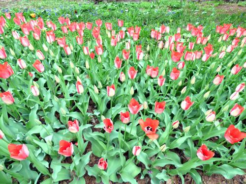 私が訪ねた5月上旬はすでに桜の見ごろは終わっていましたが、たくさんの種類のチューピップがきれいな花をつけていました。