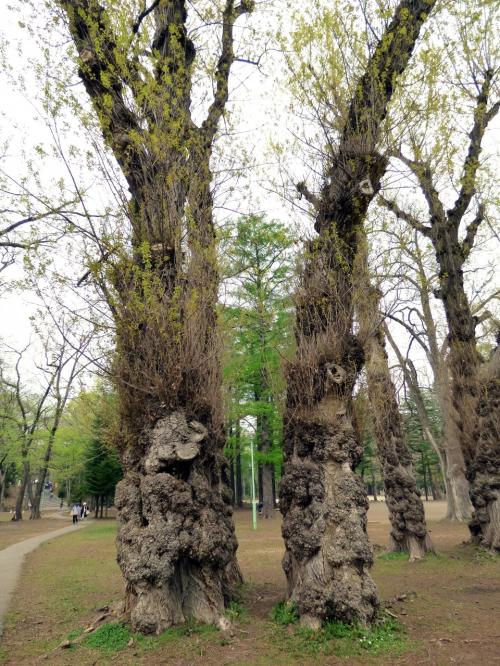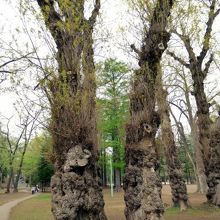 広大な園内にはサクラをはじめ、ポプラ、針桐(はりぎり)、イチイ、ユリノキ、エゾマツ、スモモ、ブナ等の木々が植えられています。
