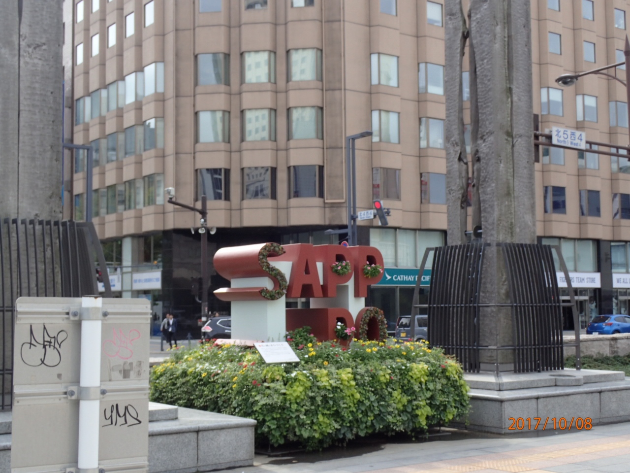 札幌駅南口から時計台を目指して歩きました。駅前通りといえば雪印パーラーの大きなパフェが飾られているのが印象的でしたが、移転のお知らせが貼られていました。そのほかにも工事しているところなどがあり、しばらく歩いていないと雰囲気が変わるな~と思いました。銀行や生命保険のビルなども多い通りです。