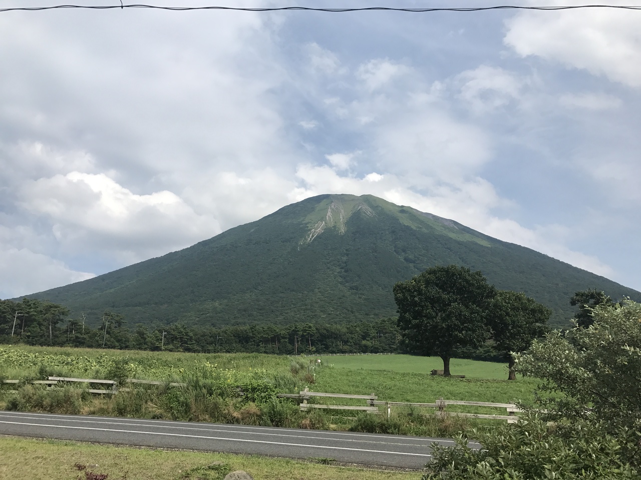 正面から見ると本当にきれいな形で、伯耆富士と言われる理由がよくわかります。遠くから見てもきれいですが、近くから見上げるのもなかなかのものです。この写真は「みるくの里」の駐車場から撮影したものです。麓はとても暑かったのですが、みるくの里あたりだと少し涼しくて気持ち良かったです。