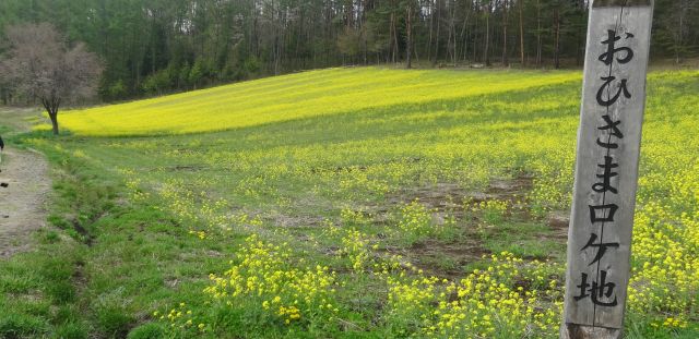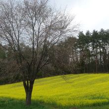 春は一面菜の花畑、秋にはそばの花が咲くそうです。夕方でしたので、ほとんど人もいなくて、静かな高原でした。さまざまな斜面を色取る菜の花はとてもきれいで心を穏やかにしてくれます。すぐ横に駐車場があるので、とても便利です。
