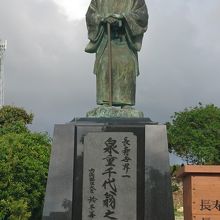 泉重千代宅横に重千代銅像が建てられています。