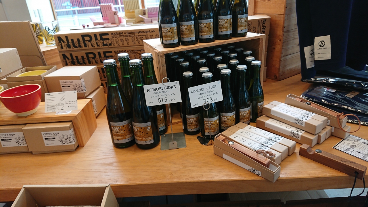 A-FactoryはJR青森駅からすぐのお土産を買ったり飲食ができる施設です。おしゃれな雰囲気です。シードルや嶽きみ(とうもろこし)を使ったサイダー他女性が好みそうなお土産やカフェ(レストラン)があります。