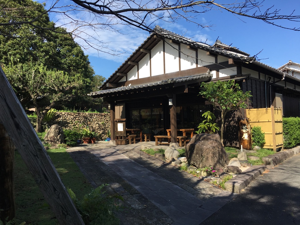 飫肥城の大手門を目指して緩い坂を登っていくと、右手に樹令千年のクスノキで造られた重さ2トンの大火鉢がありという表示がありました。どんなものだろうと入っていくと、おび天茶屋というお店でした。飫肥の名物のおび天を食べることができました。魚とトウフを混ぜた天ぷらです。