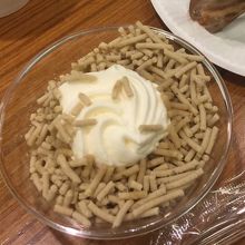 生クリームに裏ごしした栗を細い棒状にしたものが載っています。