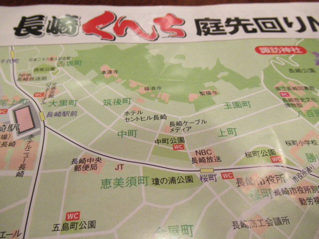 長崎駅に到着して早速観光案内所を頼りに聞き込み調査です。良い資料「長崎くんち庭先回りMAP」をいただきました。とてもわかり易く時間や場所、そして地図まで載っています。