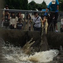 子供たちが、ワニのエサやりをすごく楽しみにしていたので、エサやりの時間に合わせて行きました。
