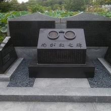 不忍池界隈を見て回った時に弁天島に立ち寄りましたが、その際に久しぶりに島に設置されている石碑や塚などを見て回りました。大小、新旧、デザインも含めてかなりの石碑が集まった弁天島ですが、そのなかでも1・2を争うぐらいのユニークさを持った石碑がこちらだと思います。徳川家康の愛用の眼鏡のデザインを再現して記念碑にしたというところも、よく考えて作られていると思います。御影石も非常に目立っていてすぐに目につきますし、たくさん石碑がある弁天島の石碑の中では是非見ることをお勧めします。