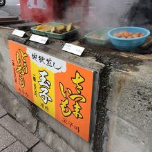 店頭には、温泉ゆでたまごやとうもろこしなどが売っていて、子供が温泉ゆでたまごが食べたいというので、購入しました。