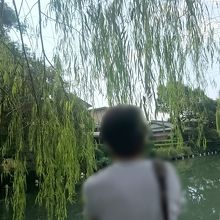 水郷に沿うように植えられている柳川の柳