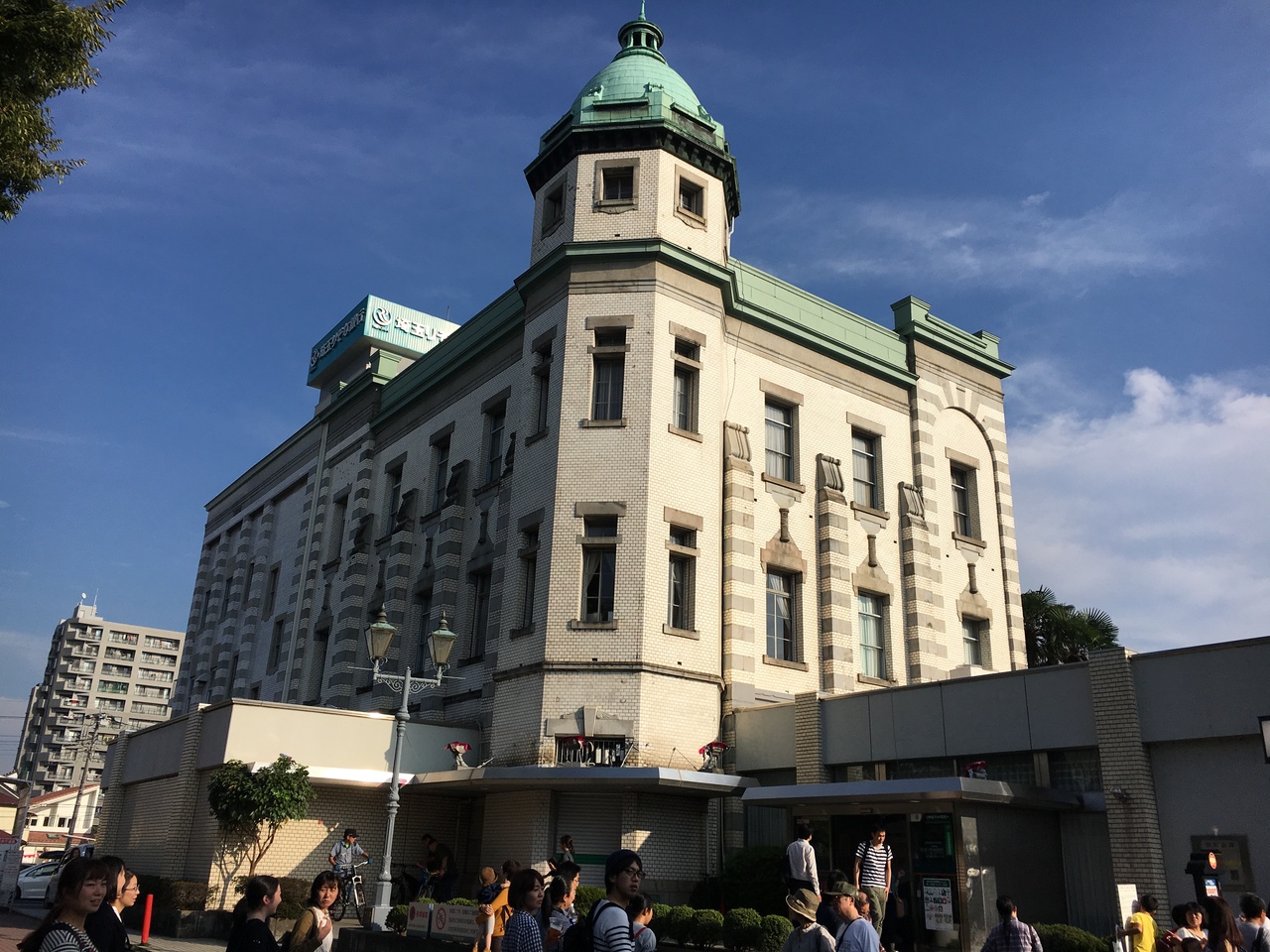 川越の蔵造りの江戸の街並みの中で、ひときわ目をひく大正時代のモダンでしゃれた建物です。白い壁に緑の屋根と塔がとてもおしゃれです。国の登録有形文化財の指定を受けていて、埼玉県ではじめて建てられた銀行とのこと。