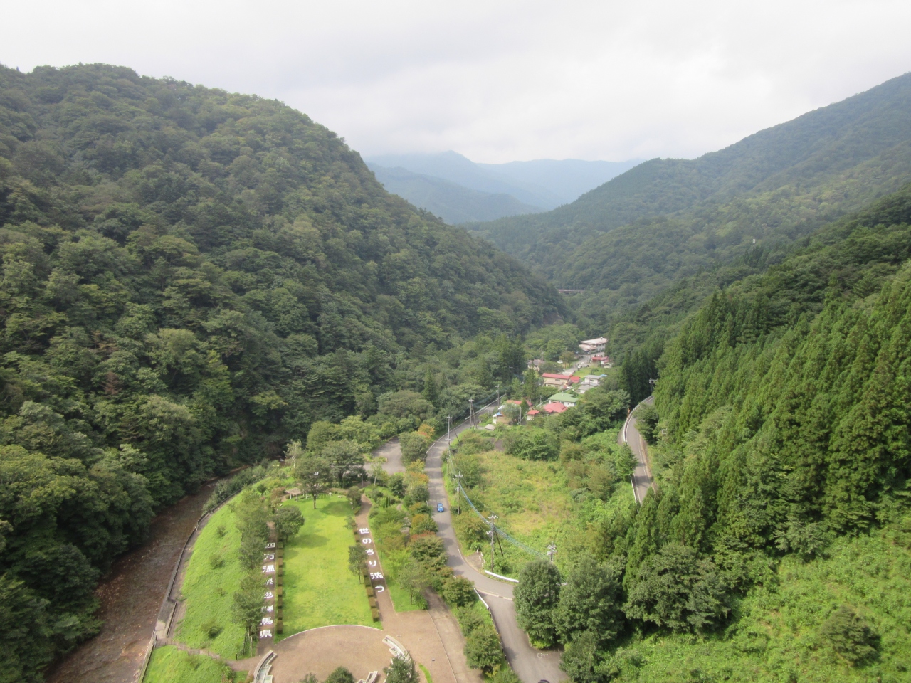 ダムの天端からの眺めは素晴らしく、ダム湖側は奥四万湖の独特の湖水「四万ブルー」が見事ですし、下流側は四万温泉を一望できます。
