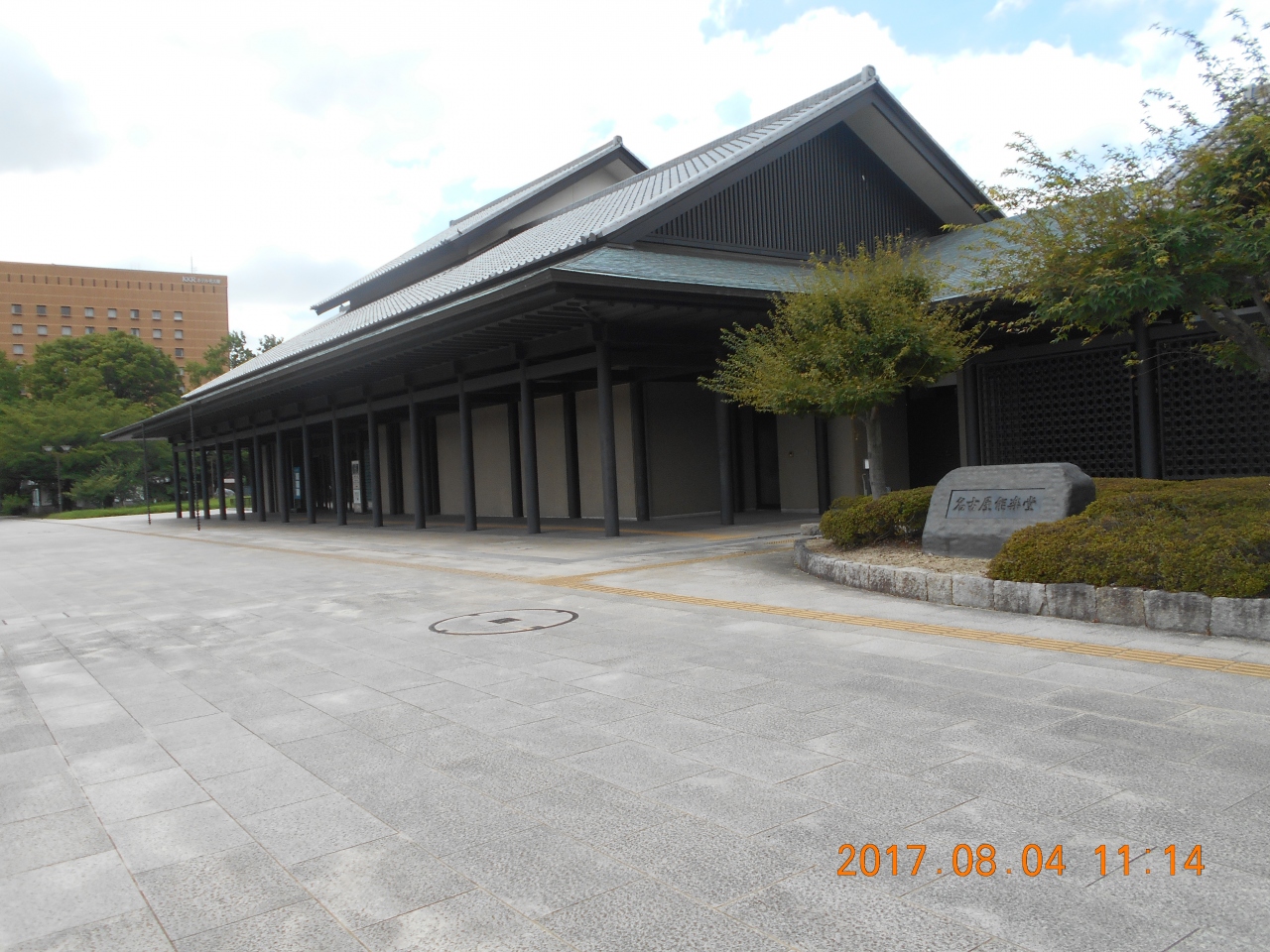 名古屋城の入り口手前にある大きな建物が能楽堂です。内部も広くて 能楽に関するいろいろな展示がされているので 普段はあまり縁のない能楽について学ぶにはいいと思います。入り口を入ってすぐのところには能舞台の一場面の様子のミニチュアが展示されていなした。