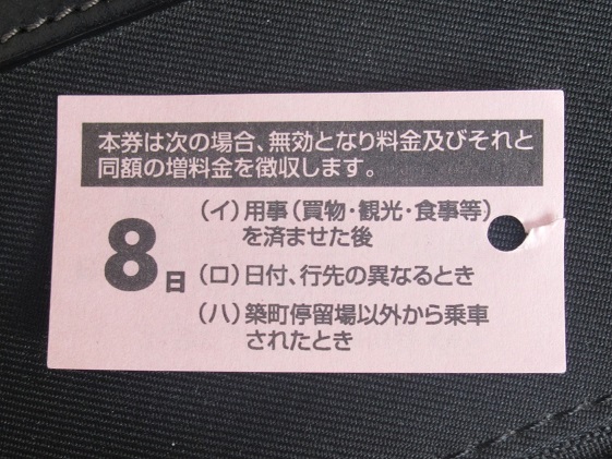 乗換駅は築町で、乗り換えする場合は運賃支払い後乗換券をいただき、乗り換え後の路線で下車時に料金の代わりに渡すようになります。