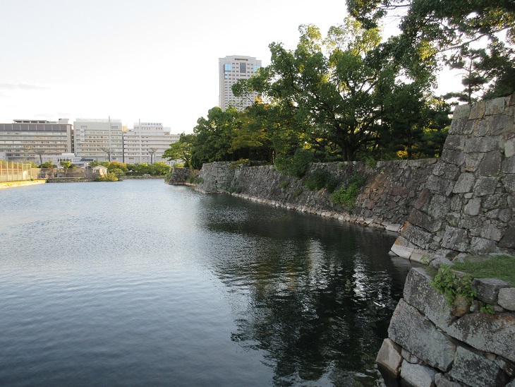 裏口入学は感心できませんが、こちら広島城への裏門からの入城は、美しい内堀を眺めながら入城できるのでお勧めです。縮景園や広島県立美術館見学からお城に向かう場合にはこちらの門ですね。なお、裏門に向かって内堀を渡る手前左手には歩兵第一連隊の碑などの見所があります。