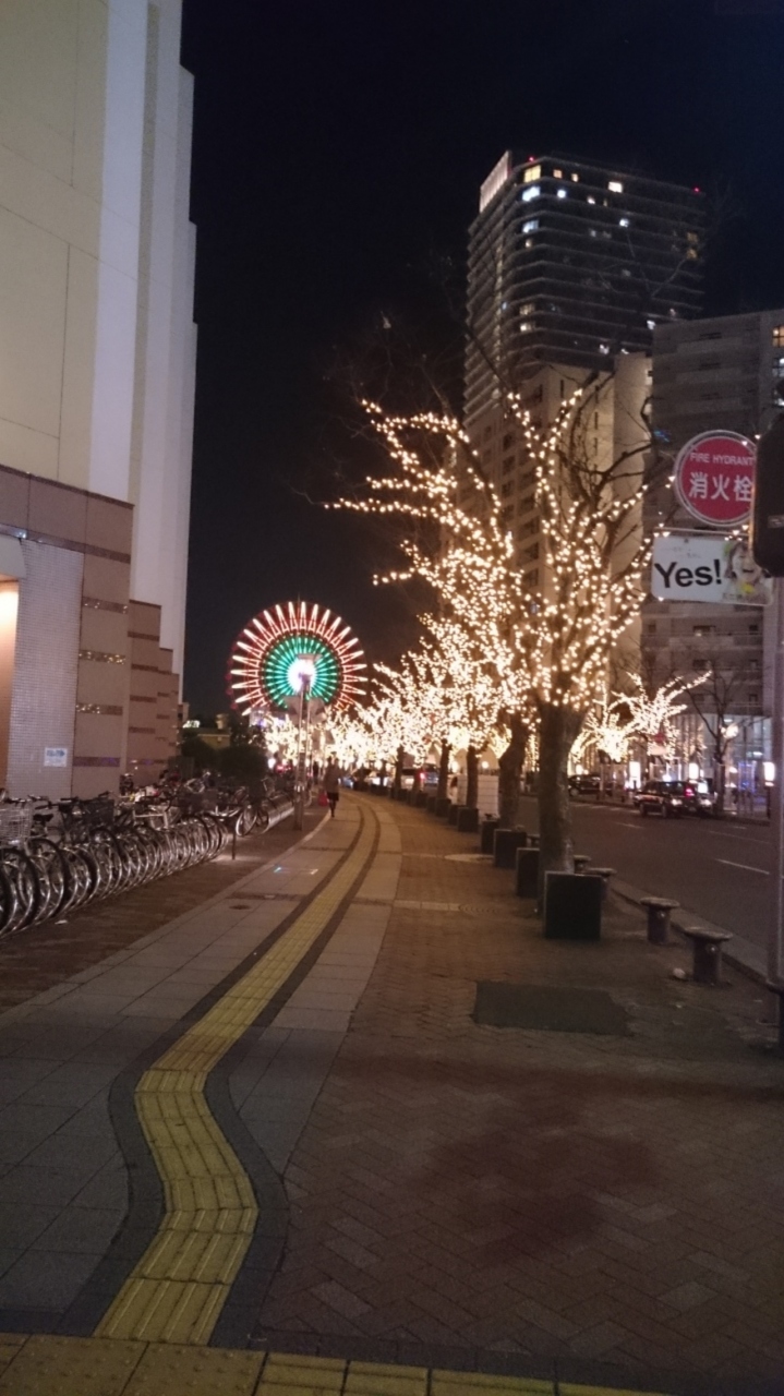 街中の街路樹や、街灯もライトアップされ、クリスマスムードといった感じです。