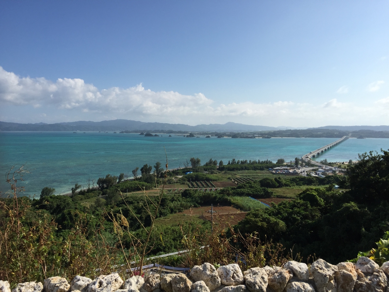 青い海が広がって、大橋が眼下に伸びます。