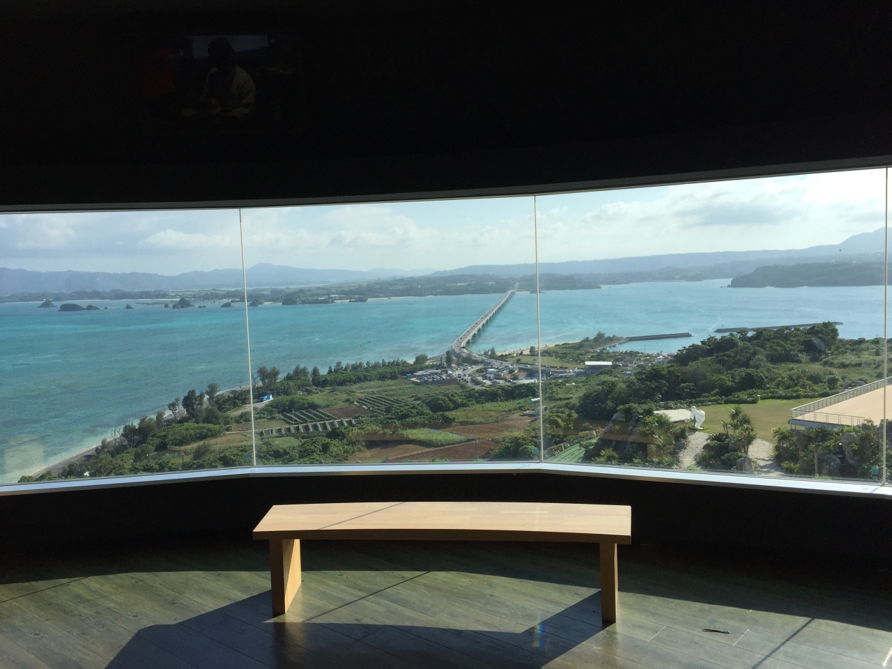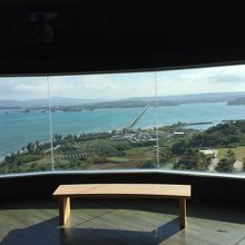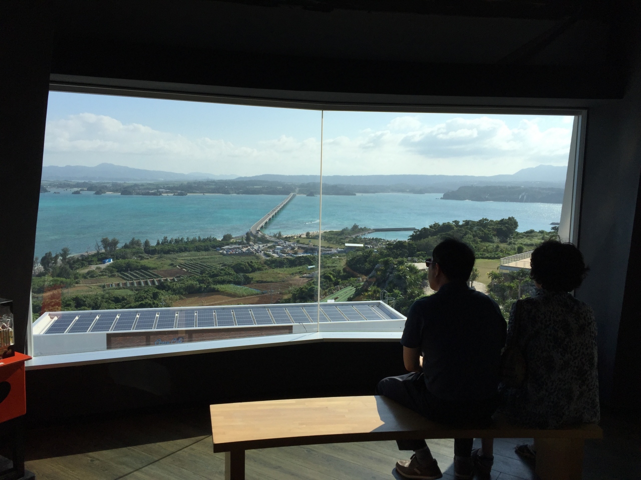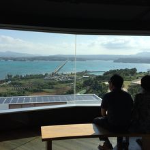 途中の展望台は室内ですが、ゆっくり座って大橋を見渡せます。