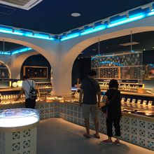 土産物店ではパインカステラやワインなどの試食も豊富に楽しめます。