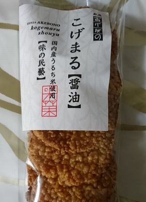 こちらの「こげまる醤油」をいただきました。お米のつぶつぶが残るちょっと硬めのおせんべいは、醤油の香ばしさが美味しいおせんべいでした。