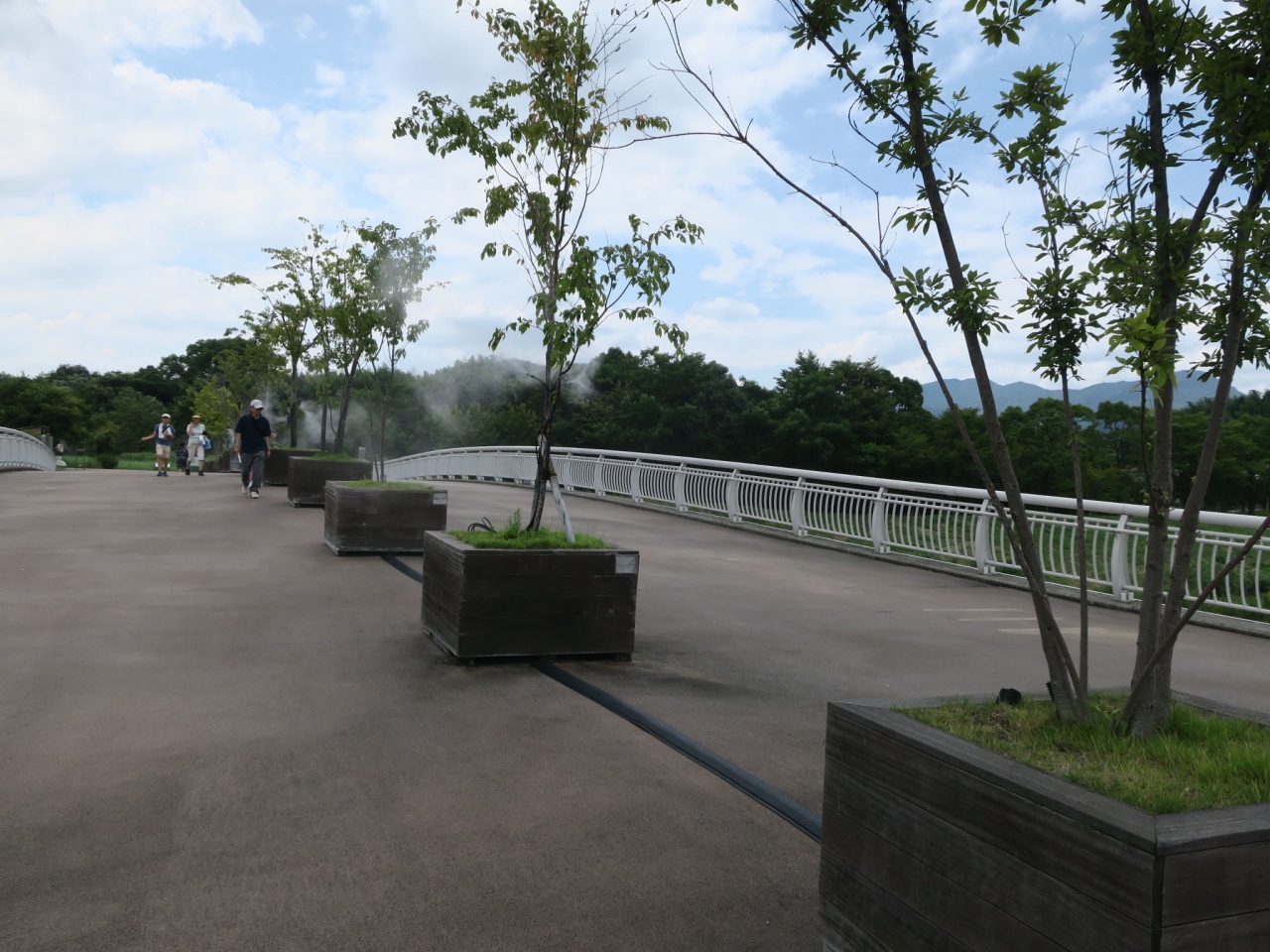 チケット売り場の前では無料ですげの笠や日傘を貸し出していたり天の浮橋ではミストを出していたりと親切な暑さ対策がされていました。