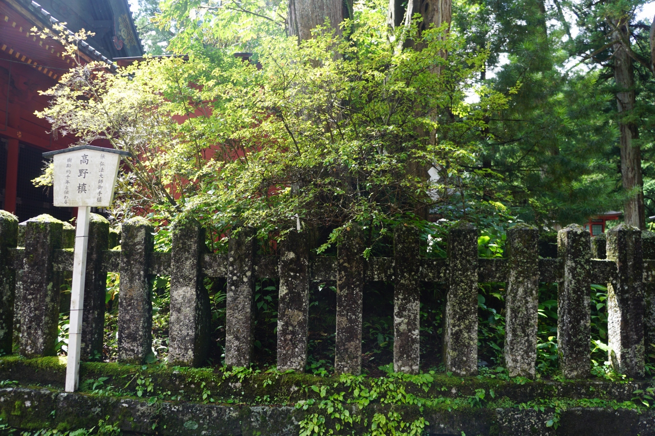 高野槙は、二荒山神社の神苑入ってすぐ右手。石垣に囲まれた一角にあります。樹齢は千年以上。弘法大師がお手植えと伝わるそうですが、本当にこんなところまで来ていたんでしょうか。高野槙は高野山の木。少なくとも高野山がルーツということでしょう。緑がきれいな樹木です。