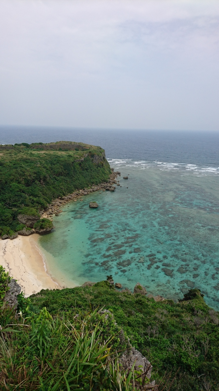 伊計島まで行く途中にある「ぬちまーす観光製塩ファクトリー」に駐車します。奥の登り道をしばらく歩き、スピリチュアルスポットを通り抜けると、眼下に素晴らしい眺望が広がります。強風で帽子など飛ばされないよう注意が必要です。