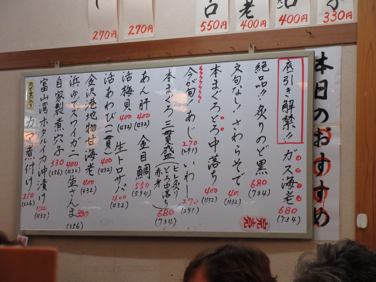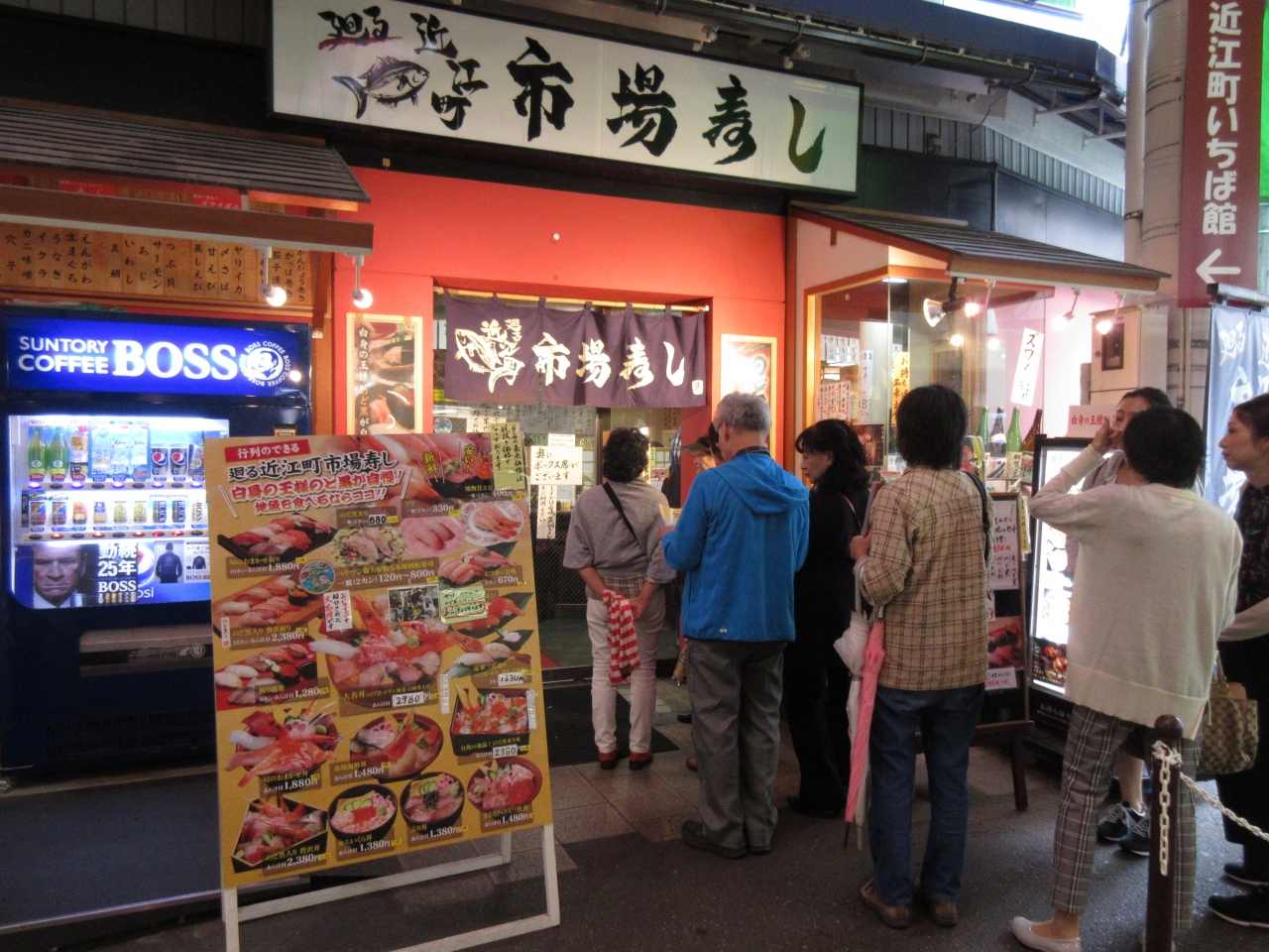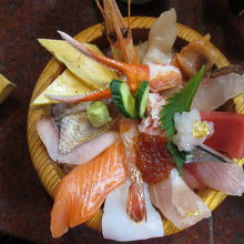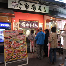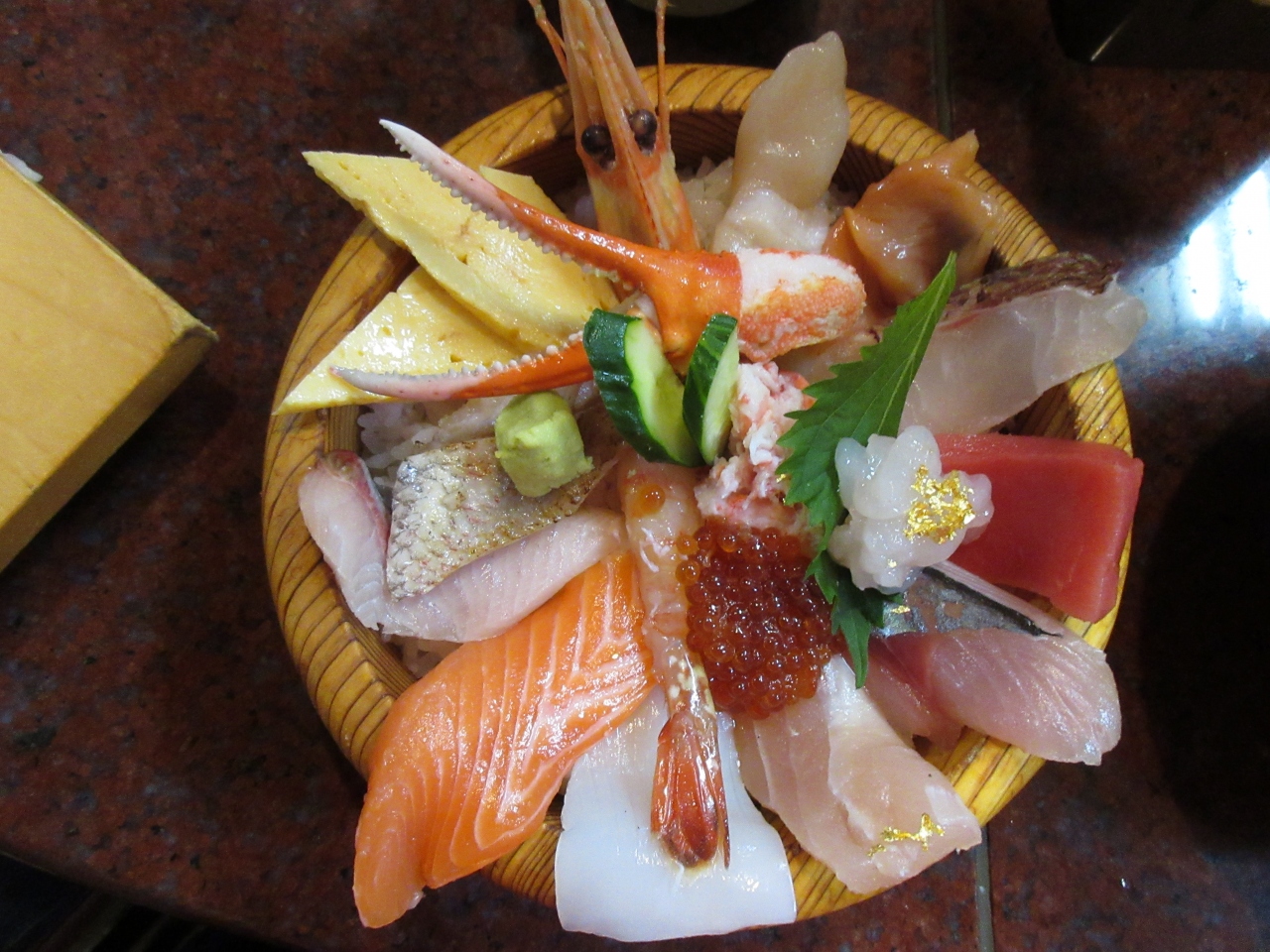 近江町市場内にある人気の寿司店です。海鮮丼や一貫ずつのお好み寿司も味わうことができます。のど黒や牡丹えび、白エビなど12種類ほどの魚介類がのった大名丼をいただきましたが、どのネタも厚く、脂がのっていてとても美味しかったです。大名丼以外にも、のど黒炙り重や旬のおまかせ丼など色々な丼ものが用意されています。人気店なので外で待つこともありますが、回転が速いので15分ほど待てば席に着くことができました。