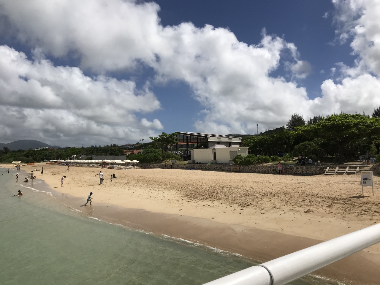 フサキビーチは、夕陽が綺麗に見える人気スポットだそうですが、日中に訪れたので、桟橋も空いていました。