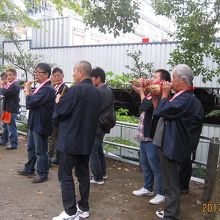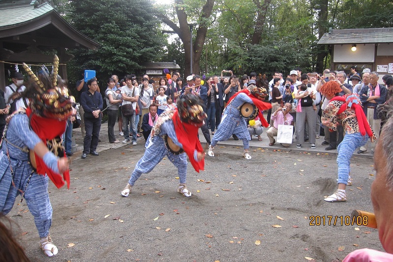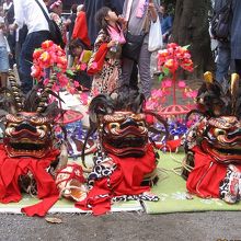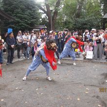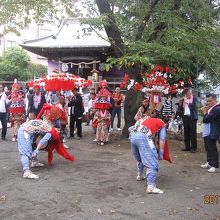 「牛込獅子舞」は「驚神社」の秋の例大祭に奉納されますが、前日には「神明社」でも奉納されます。