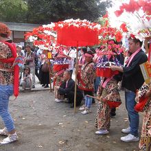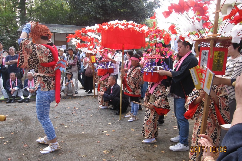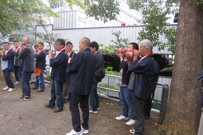 その他に、ホラ貝3人、笛数人、歌上数人は大人で、牛込地区の古老があたります。