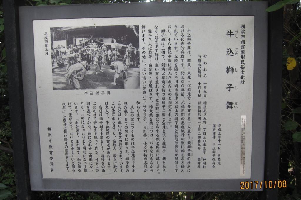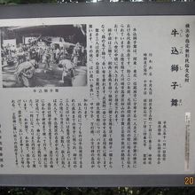 「牛込獅子舞」は、一人立ち三頭獅子舞の横浜における代表的存在で、横浜市指定無形民俗文化財に指定されています。約300年前、元禄年間の疫病流行の際に始まったと伝えられています。