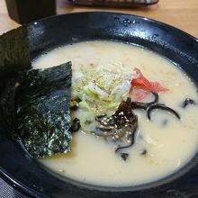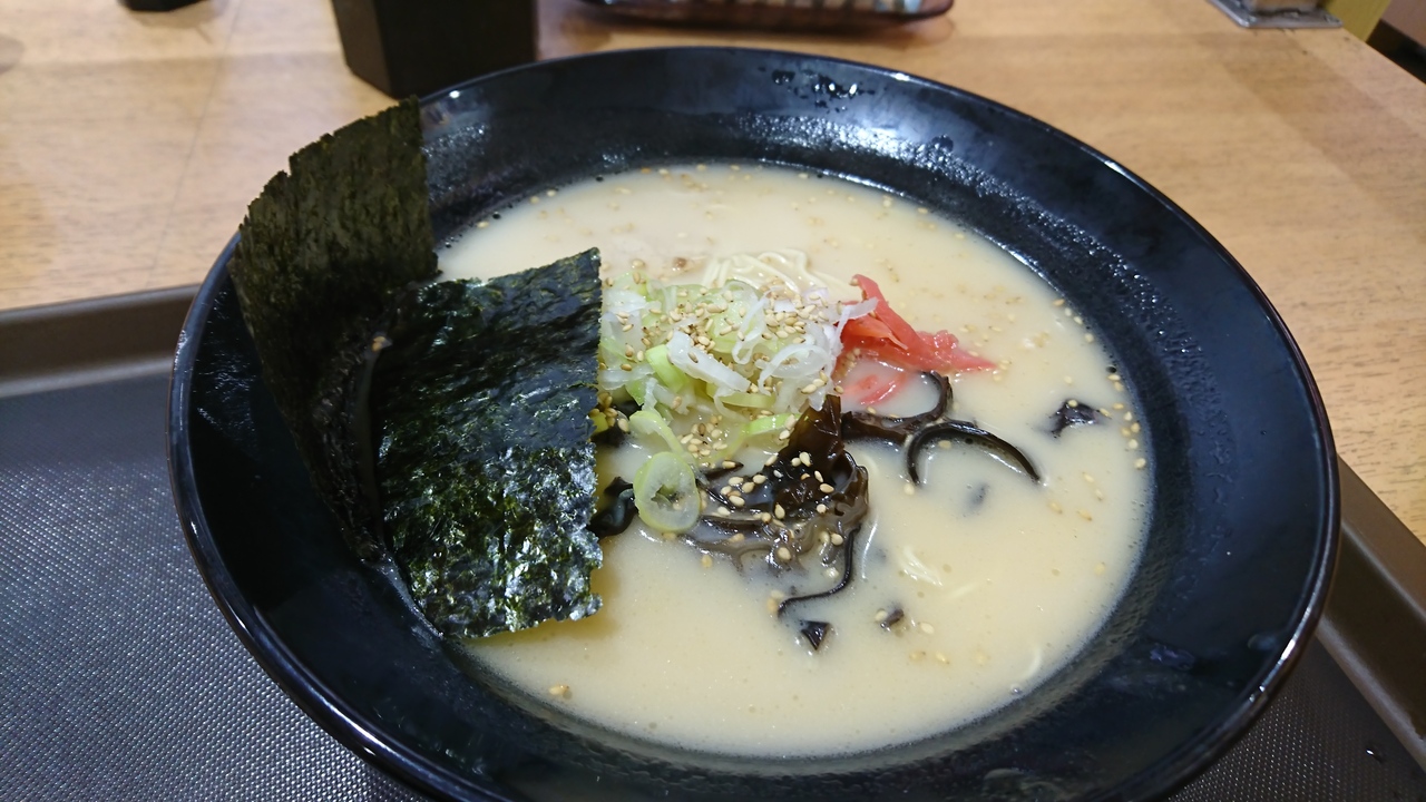 西武新宿駅から徒歩数分。靖国通り、歌舞伎町入り口の前にあります。普通の立ち食いそばなのですが、そば以外のメニューも充実していて、カツ丼やカレーもあり。さらには「とんこつラーメン」もあります。とんこつラーメンは、替え玉一回もしくはRIZE一膳無料の500円で、コスパがよい。思っていたよりも本格的なとんこつラーメンで、一部のとんこつラーメンチェーンと同レベルの味。麺のかたさは指示しませんでしたが、硬めに茹でてくれたのでちょうど良かったです。とんこつラーメンには、辛子高菜と紅生姜が用意されています。