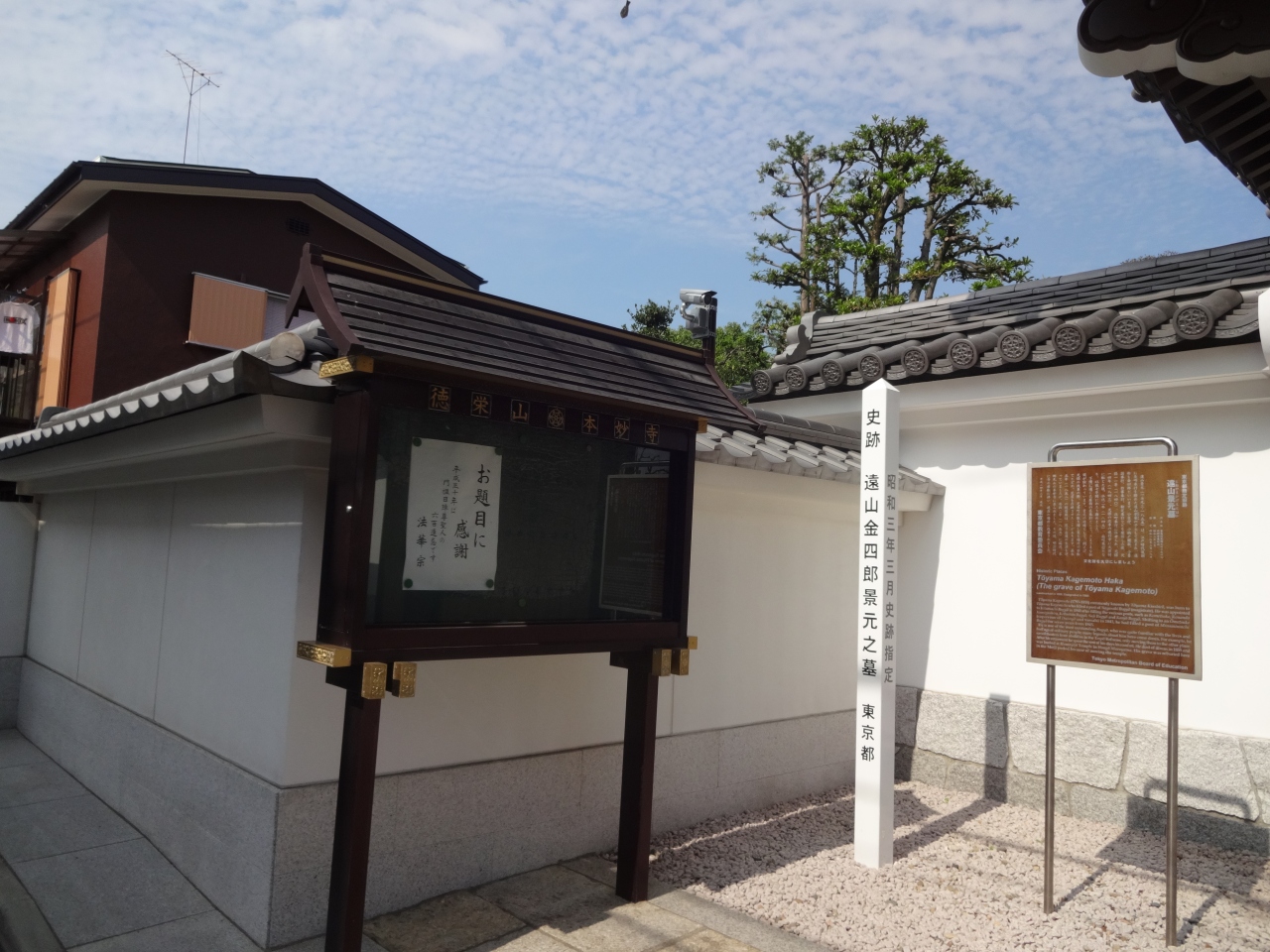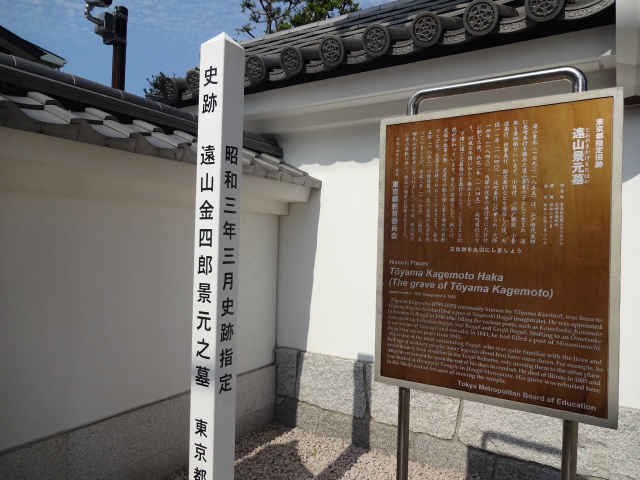 大きな門の左横に「遠山金四郎の墓」という表示や解説版がありました。