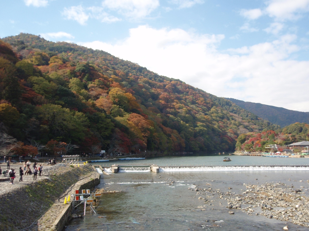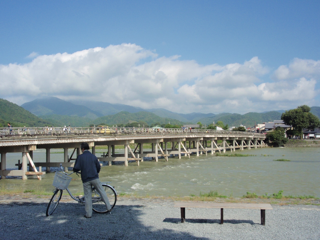 大阪方面から嵯峨野に行く場合、阪急嵐山線嵐山駅で下車し、8分ほどで保津川(桂川)にかかる渡月橋を渡ると嵯峨野に入る。嵯峨野に行く場合は、京都駅経由より便利であるので、私はこの橋を良く利用する。周辺には天竜寺を初めてとして多くの寺院がある。秋に橋の中央に立ち上流を見ると、左手に見える嵐山の錦秋、川の両岸にある紅葉が川面とあいまって素晴らしい光景である。四月には嵐山公園を含めて、両岸に咲く桜もすばらしい。是非春と秋に訪れてみて下さい