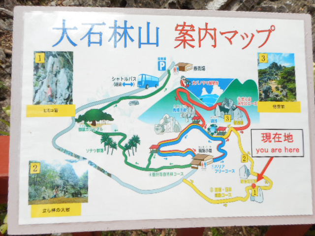 沖縄北部の最先端に近い場所にあるので、名護方面からも結構時間がかかります。観光客はけっこう多く、駐車場からバスで山まで送迎してくれます。山はバリアフリーコースから、本気コースまでいろいろ。不思議な岩山が続いていて面白かったですが、時間は多めに取っておくといいですね。