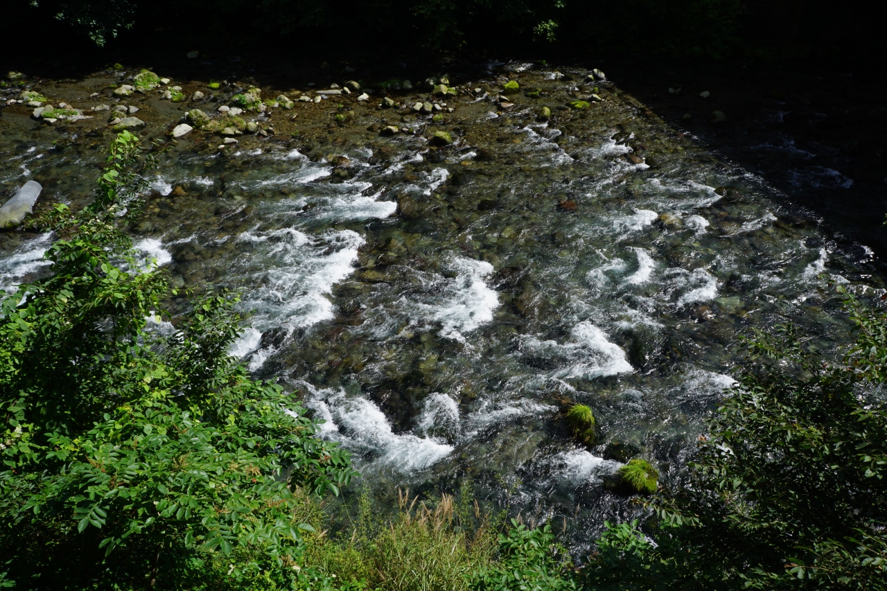 神橋の下を流れる川が大谷川。街の近くを流れる川ですが、びっくりするくらい澄んだ水。きれいな流れで、とても癒されます。日光を開いた勝道上人がこの大谷川を渡るのに難渋し、それを助けるため、蛇を投げてもらって川を渡ったというのが日光の起源。雨が降れば濁流となるのでしょうが、普段、橋の上から眺める眺めからはちょっと想像できません。